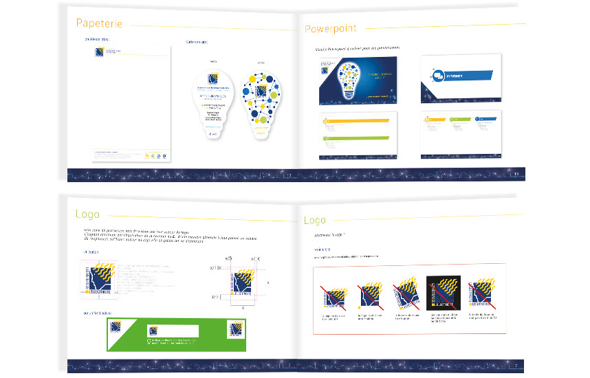 Création de charte, papier entête, gab PPT, signature mail, carte de visite.